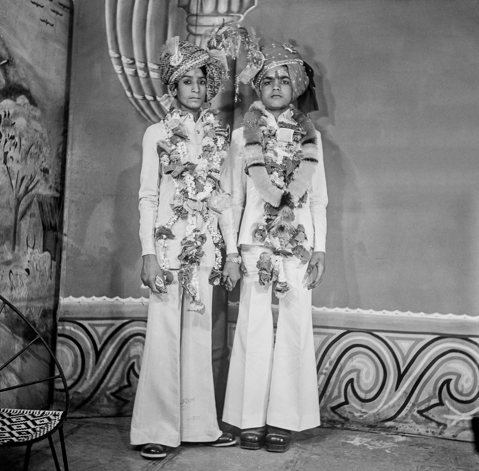 There was, of course, much more to Punjabi's work than administrative portraits. Life in Nagda at the time, like in many towns in India, moved along a network of overlapping social relations — romantic, platonic, filial, communal, professional. As photography opened up new opportunities for self-representation, these relations seeped into Suhag Studio as well.