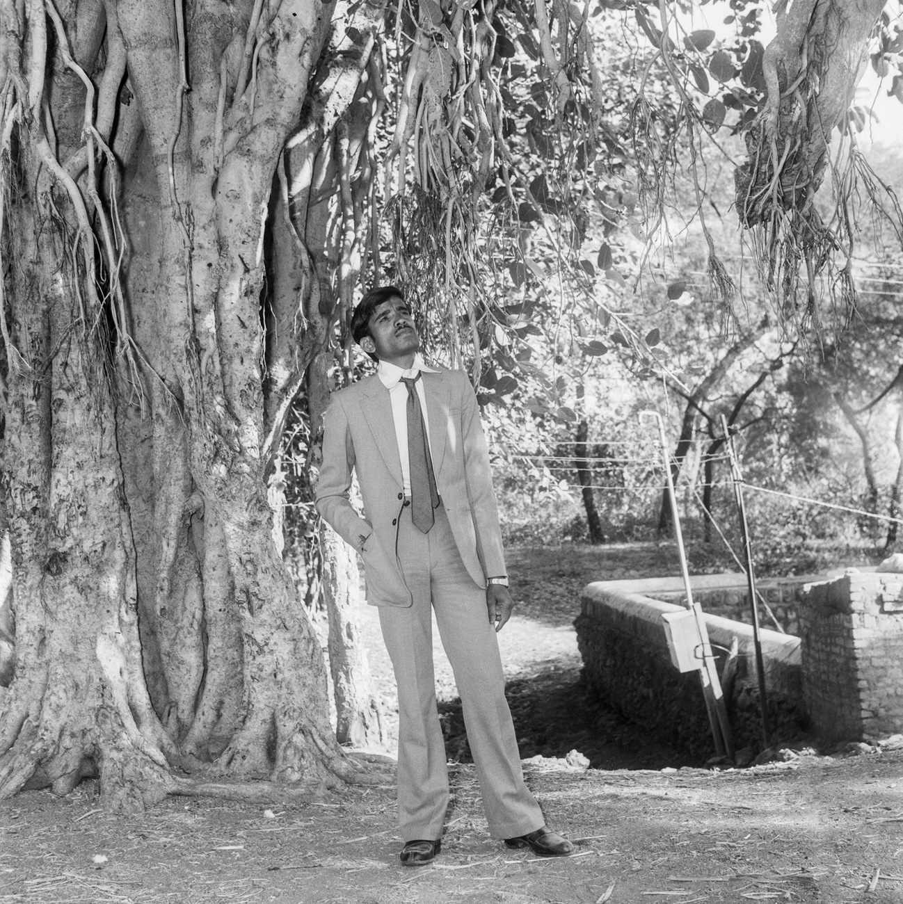 Born in 1957, a decade after Independence, the man who took this portrait of the farmer was Suresh Punjabi, the owner of Suhag Studio, which he opened in the town of Nagda, Madhya Pradesh in the late 1970s. Punjabi grew up in a changing India, where Jawaharlal Nehru’s vision for postcolonial modernisation was gradually transforming small and mid-sized towns across the country. At the same time, photography studios were proliferating beyond big cities, quickly becoming fixtures of community life in places like Nagda.